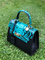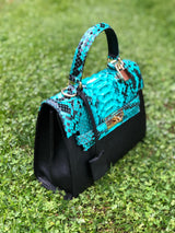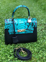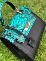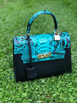 Bolso Luna Médium Pitón Verde Esmeralda Piel Negro