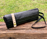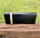 Bolso Cluch confeccionado en piel coco negro y piel de pitón :