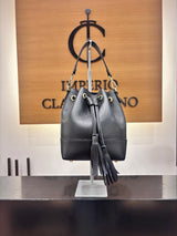 Este elegante saco bombonera está elaborado en piel de vacuno de alta calidad, lo que le da una apariencia lujosa y duradera. Cuenta con un asa corta para llevarlo de mano y una bandolera regulable para mayor comodidad al cruzarlo. El interior también está forrado en piel, con un práctico bolsillo para mantener tus objetos personales organizados. en piel y bolsillo interior .