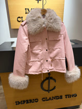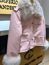 Cazadora Frunce Piel Eco Rosa