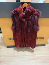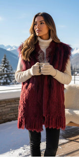 Chaleco Largo Piel Conejo Granate