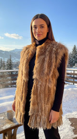 Disfruta de un estilo único y acogedor con el Chaleco Largo de Piel de Conejo . Su diseño con detalles de pelo y flecos no solo añade un toque elegante, sino que también te brinda calidez y confort, ideal para cualquier ocasión. Perfecto para combinar con tu atuendo diario.