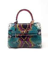 Hand bag Luna Medium Fantasy Fuchsia Green Yellow Python