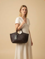 Este bolso Shopper en piel de vacuno trenzada es ideal para tus compras, ligero y cómodo de llevar. Sus asas largas te permiten colgarlo del hombro. Además, cuenta con un organizador de tela en el interior para mantener tus pertenencias en orden. Haz tus compras con estilo y comodidad.