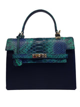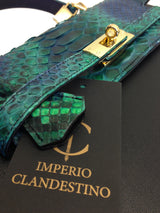 Bolso Luna Big Pitón Verde Azul Piel Negro